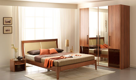 Шкаф «Галант» и кровать «Прима» Популярная спальня с изысканным дизайном и качественным исполнением. Возможно применение фасадов с покраской высокоглянцевой эмалью. Обратите внимание на элементы с радиусными фасадами.