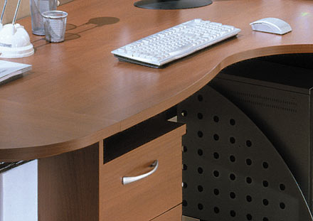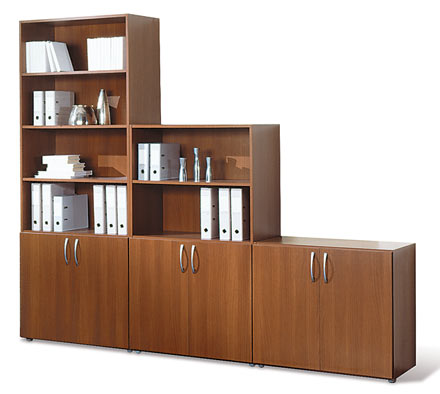 Коллекция оперативной мебели для офиса "Линия Омега" это: эргономичный дизайн современный стиль оригинальные цветовые решения. Уникальность серии заключается в её функциональности и композиционной многогранности, что позволяет организовать рабочее пространство типа и назначения. В производстве мебели используется высококачественная ЛДСП, задние стенки шкафов выполняются из ДСП, дно ящиков - ДВП, защитная противоударная кромка ПВХ, высококачественная фурнитура импортного производства. "Линия Омега" включает широкий спектр шкафов для хранения документов и зонирования пространства: открытых, со стеклянными, щитовыми дверями и различными их комбинациями. -Для основного зонирования используются высокие шкафы - высота 2160 мм. -Для индивидуального зонирования - шкафы средней высоты - 1456 мм. -В качестве тумб для оргтехники - низкие шкафы - 752 мм. Создавая интерьер на элементарной базе серии шкафов "Линии Омега", вы получаете: -Больше полезного объема: 6 полок для хранения документов вместо 5, 4 вместо 3. -Больше прочности: задняя стенка из ЛДСП 10 мм вместо традиционного ДВПО 3,2. -Больше эстетики: в создании интерьера участвует не только фасад, но и оборотная сторона шкафа, облицованная с двух сторон, и используемая в качестве офисной перегородки.