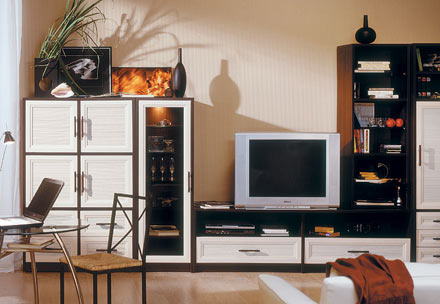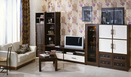 Гостиная «Эва» Сдержанность предлагаемого декора и четкие линии придадут Вашему дому очарование открытого стиля жизни. Для максимального удобства система стеллажей свободно формируется в желаемых вариантах.