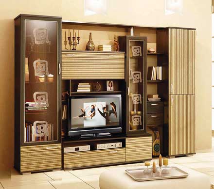 Гостиная «Сафари» Габариты (ВхШхГ): 2740×540×2000мм Материалы: ЛДСП «Орех Аида Табак» производства Германия, МДФ плёнка глянец расцветка «Зебрано», стекло тонированное. Цена 42 060 руб. Возможны любая комплектация и расцветки по индивидуальному проекту. Изготовим любую мебель под заказ. Компьютерный дизайн. Материалы: ЛДСП Россия/Германия, МДФ крашеная-глянец/матовая/плёнка ПВХ, профиль алюминий, МДФ. Расцветки и комплектующие в большом ассортименте. Срок изготовления 1 месяц.